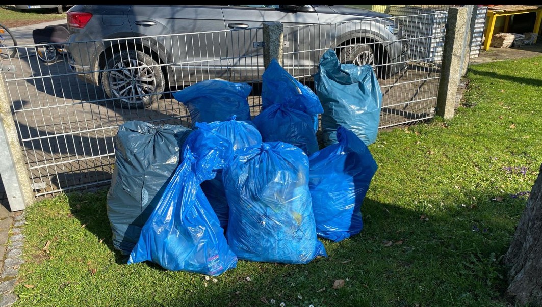 Ausgestattet mit Handschuhen und Müllsäcken machten sich die Helferinnen und Helfer daran, Wege, Waldränder und Wiesen von achtlos weggeworfenem Abfall zu befreien. Dabei kamen 10 prall gefüllte Müllsäcke zusammen. Zusätzlich wurden zahlreiche Gläser, Flaschen sowie Metallteile eingesammelt.